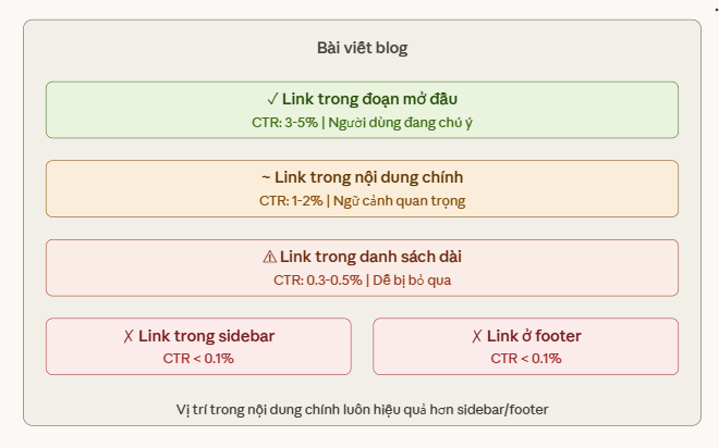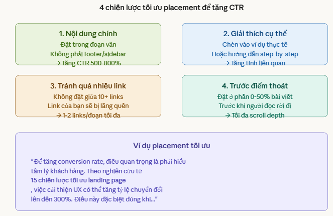 Việc đặt link quá sớm khi người đọc chưa hiểu bối cảnh hoặc quá muộn khi họ đã mất tập trung đều làm giảm hiệu quả. Placement tối ưu thường nằm ở giữa bài, nơi nội dung đạt cao trào về thông tin.