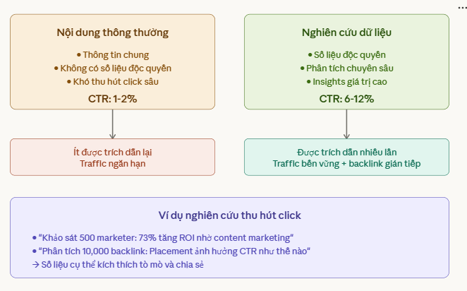 Nội dung nghiên cứu dữ liệu cung cấp thông tin độc quyền và có chiều sâu. Khi người đọc thấy số liệu hoặc phân tích chuyên sâu, họ có xu hướng muốn khám phá nguồn đầy đủ. Điều này làm tăng khả năng tạo referral traffic chất lượng.