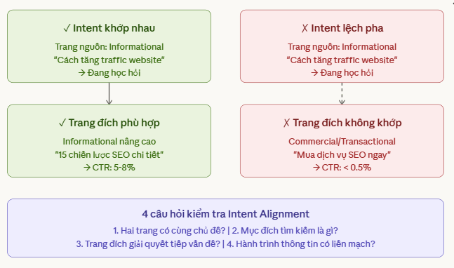 Nếu intent không khớp, link trở nên lạc lõng trong nội dung. Người đọc không thấy lý do để rời khỏi bài viết hiện tại.