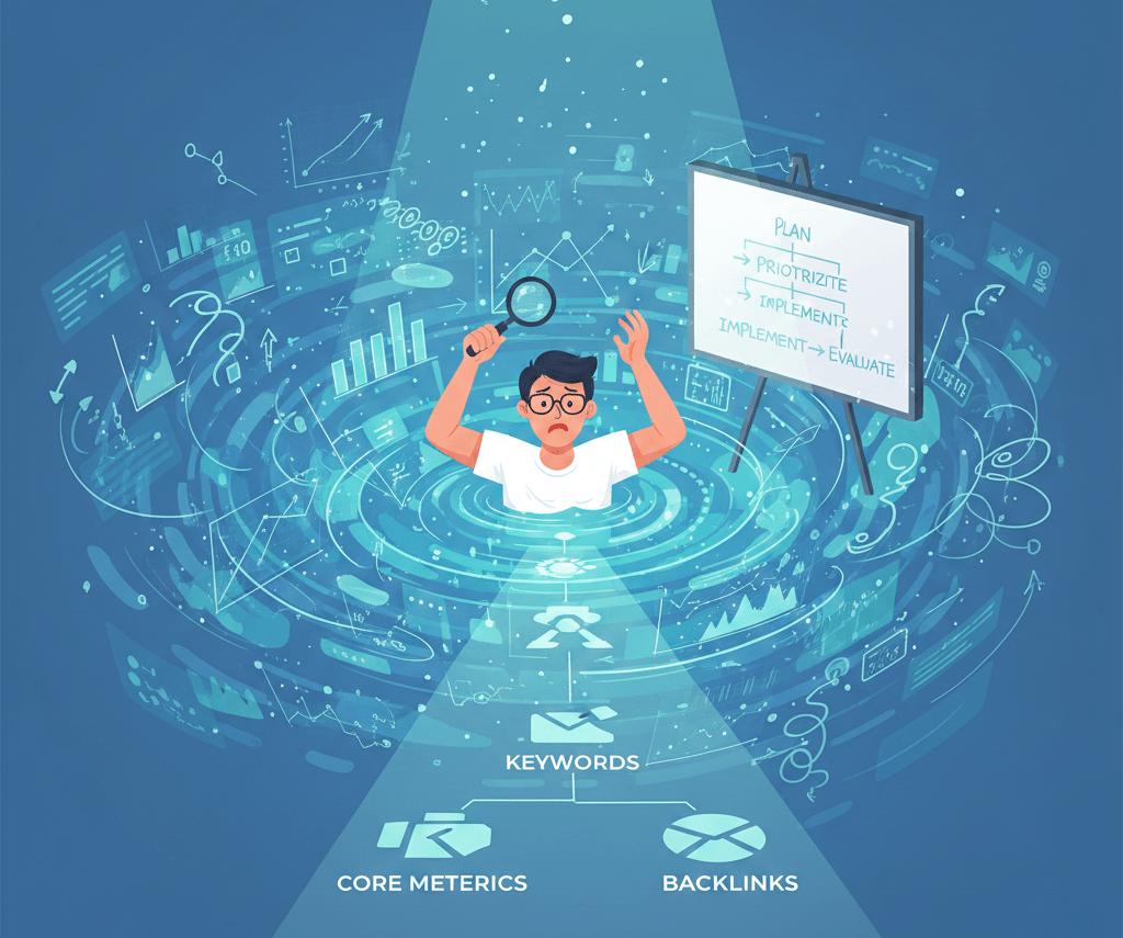 Người mới làm SEO thường hay bị cuốn theo hàng đống dữ liệu mà không tập trung vào các yếu tố cơ bản và cần thiết. Những chỉ số như tỷ lệ chuyển đổi, tỷ lệ thoát, hay thời gian lưu lại trang đã là những thước đo đủ hữu ích để bắt đầu cải thiện. Khi bạn chìm đắm trong quá nhiều chỉ số, rất dễ dẫn đến mất tinh thần và không thấy được bức tranh toàn cảnh.