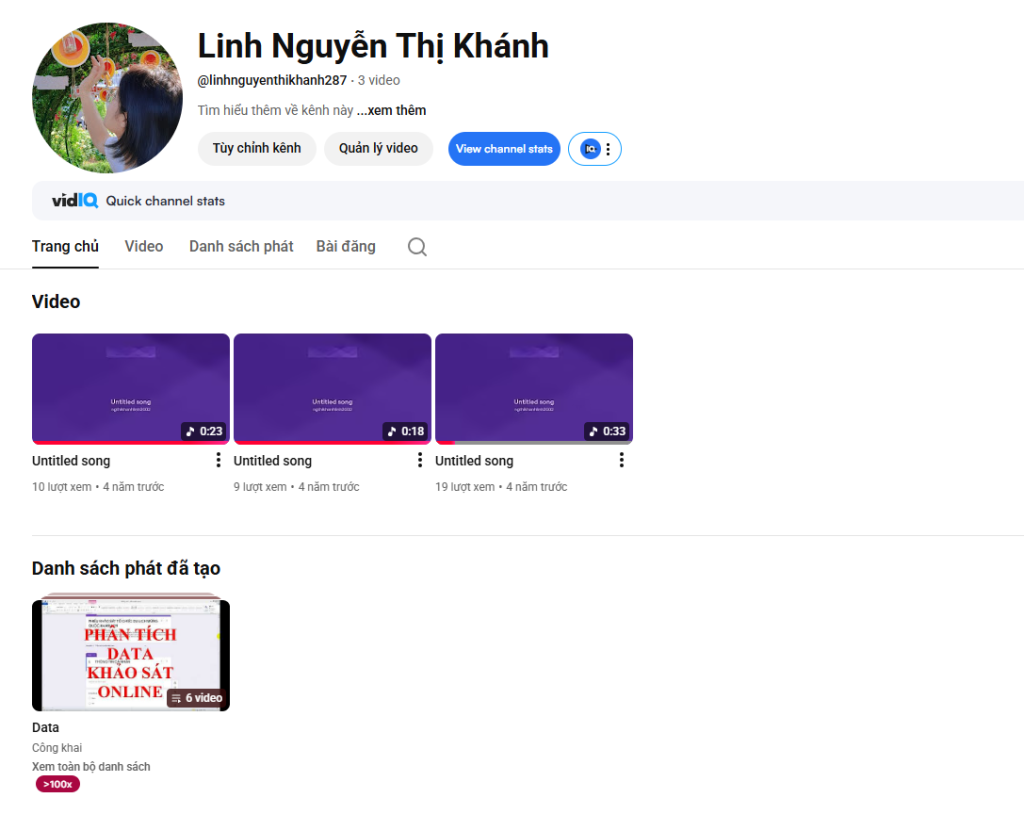 Sau khi cấp quyền truy cập, người dùng mở lại giao diện để kiểm tra trạng thái kết nối. Khi vidIQ đã được liên kết thành công, các chỉ số SEO và dữ liệu từ khóa sẽ bắt đầu hiển thị trực tiếp trong giao diện YouTube.