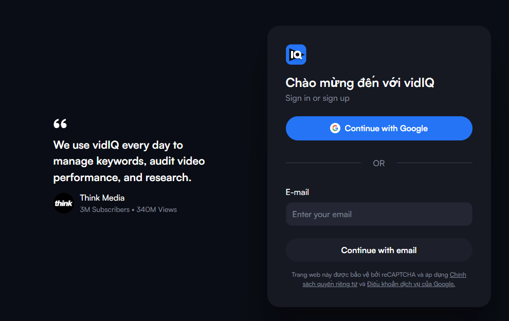 3. Bước 3: Đăng nhập vào tài khoản vidIQ: