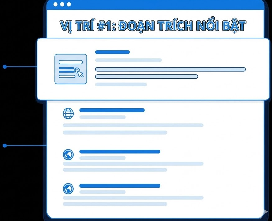 Google so sánh các trang, đánh giá độ chính xác, rõ ràng, tính chuyên môn và sự phù hợp ngữ nghĩa để chọn đoạn nội dung trả lời trực tiếp nhất. - Bước 4: Trích xuất và hiển thị lên vị trí nổi bật