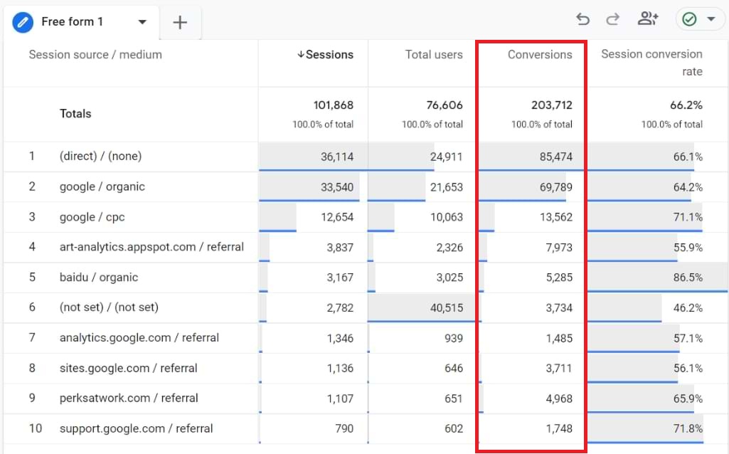 Chỉ số Conversions cho biết mức độ người dùng hoàn thành các hành động quan trọng trên website hoặc ứng dụng. Thay vì chỉ theo dõi lượt truy cập, bạn có thể tập trung vào kết quả cuối cùng gắn liền với doanh thu hoặc lead. Nhờ đó, người làm SEO và marketing dễ dàng đánh giá hiệu quả chiến lược và tối ưu hành trình chuyển đổi một cách rõ ràng hơn.