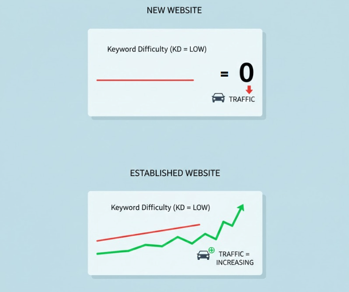 Trong nhiều trường hợp, những từ khóa có độ cạnh tranh thấp cũng có thể không đưa lại lưu lượng truy cập cho các trang mới, trong khi đó các trang đã tồn tại lâu dài hơn lại gặt hái được thành công. Điều này đã làm tăng thêm sự lo ngại cho nhiều nhà phát triển, vì họ phải đối mặt với áp lực lớn trong việc duy trì lưu lượng truy cập và tối ưu hóa web mà không thấy được hiệu quả liền mạch.