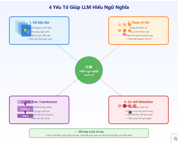 Các yếu tố giúp LLM mạnh trong việc hiểu ngữ nghĩa?