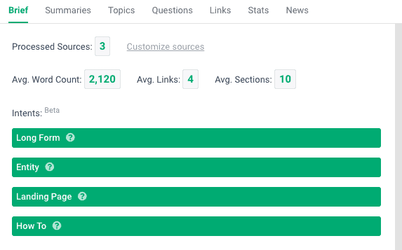 Khác với việc thủ công truy cập từng bài đối thủ, Frase gom toàn bộ thông tin này vào một bảng dữ liệu rõ ràng. Điều này đặc biệt hữu ích khi xây dựng semantic content brief, tức là bản hướng dẫn nội dung dựa trên thực thể và ngữ nghĩa, giúp đảm bảo bài viết không chỉ đúng ý định tìm kiếm mà còn bám sát cấu trúc ngữ nghĩa của lĩnh vực.