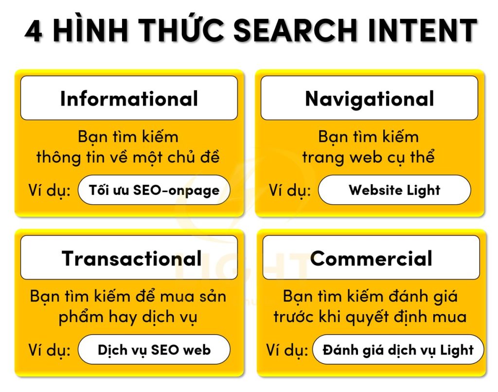 – Informational: Tìm hiểu kiến thức, ví dụ “Entity SEO là gì”.