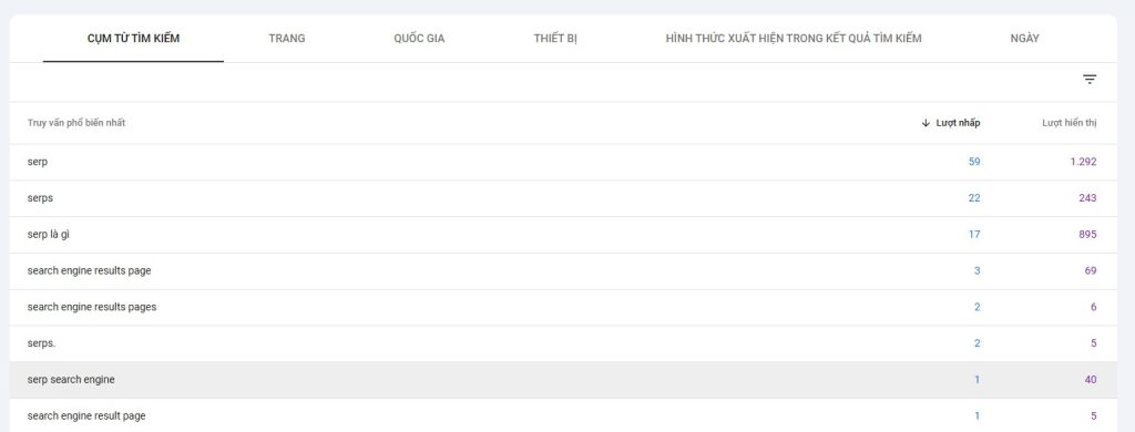 Trong GSC, bạn có thể xem search query nào đang mang lại traffic cho website. Nếu một truy vấn có nhiều hiển thị nhưng CTR thấp, đó là dấu hiệu để tối ưu tiêu đề hoặc mô tả. Ngược lại, nếu truy vấn ít xuất hiện nhưng CTR cao, bạn có thể cân nhắc mở rộng nội dung cho nó.