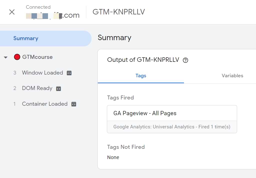 Một tab chứa giao diện Google Tag Manager của bạn.