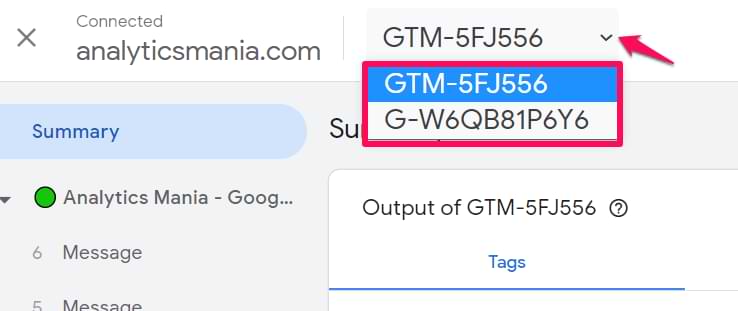 - Một tab mới mở trang tagassistant.google.com, nơi hiển thị giao diện Preview Console (bảng xem trước và gỡ lỗi thực tế).