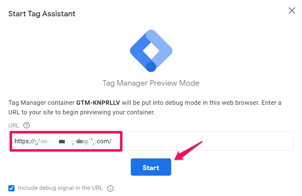 Tại trang đó, một cửa sổ popup sẽ yêu cầu bạn nhập URL của website mà bạn muốn kiểm tra và debug. Bạn có thể nhập địa chỉ trang chủ hoặc một URL cụ thể của trang cần test, sau đó nhấn Start để bắt đầu quá trình xem trước và gỡ lỗi.