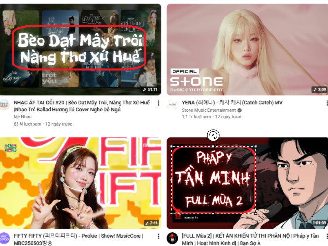 Văn bản trên thumbnail nên ngắn gọn, rõ ràng và làm nổi bật thông điệp quan trọng của nội dung. Thông thường, chỉ nên sử dụng một vài từ khóa chính để giúp người xem nhanh chóng hiểu nội dung đang nói về điều gì. Ngoài ra, kiểu chữ cần dễ đọc và có kích thước đủ lớn để người dùng vẫn có thể nhận diện văn bản ngay cả khi thumbnail hiển thị ở kích thước nhỏ.