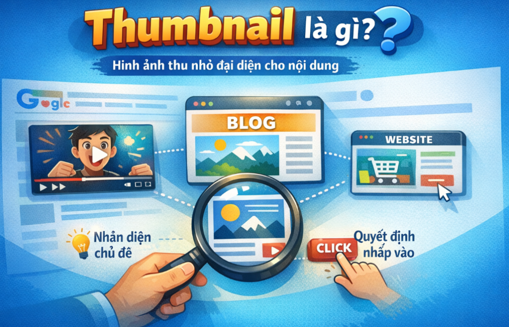 Thumbnail là gì là câu hỏi phổ biến khi người làm SEO và nhà sáng tạo nội dung bắt đầu tối ưu hình ảnh hiển thị cho video hoặc bài viết. Thumbnail là hình ảnh thu nhỏ đại diện cho nội dung, thường xuất hiện trên website, video hoặc các nền tảng nội dung số. Hình ảnh này giúp người dùng nhanh chóng nhận diện chủ đề và quyết định có nhấp vào nội dung hay không. Vì vậy, hiểu rõ thumbnail là gì và cách thiết kế thumbnail phù hợp có thể giúp cải thiện tỷ lệ nhấp (CTR) và hiệu quả tiếp cận nội dung.