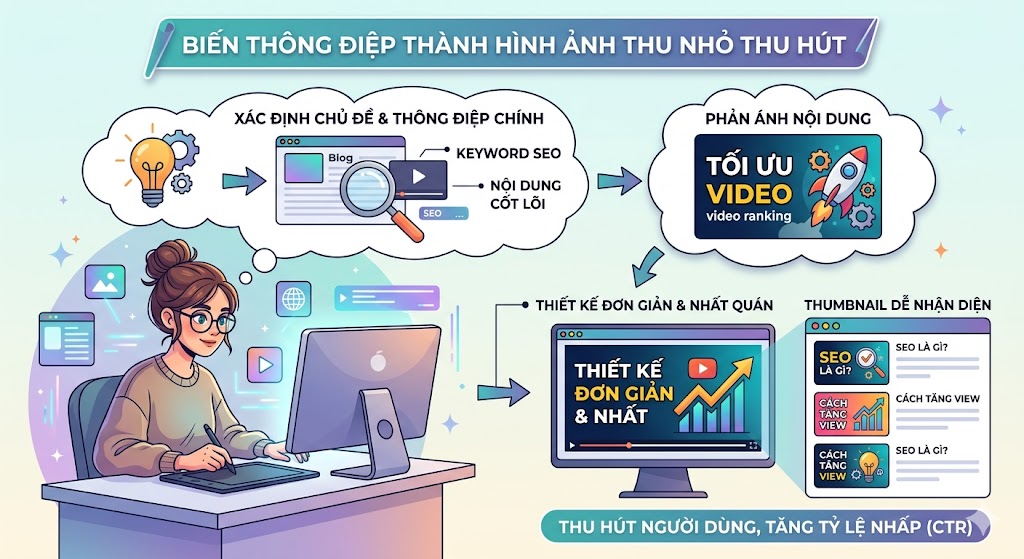 Một thumbnail hiệu quả không chỉ cần đẹp về mặt hình ảnh mà còn phải truyền tải được nội dung chính một cách nhanh chóng và rõ ràng. Khi người dùng lướt qua nhiều video hoặc bài viết, thumbnail cần đủ nổi bật để thu hút sự chú ý trong thời gian ngắn. Vì vậy, người làm SEO và nhà sáng tạo nội dung cần chú ý đến nhiều yếu tố như hình ảnh, văn bản, màu sắc và bố cục. Khi các yếu tố này được kết hợp hợp lý, thumbnail sẽ dễ thu hút người xem và giúp tăng khả năng nhấp vào nội dung.