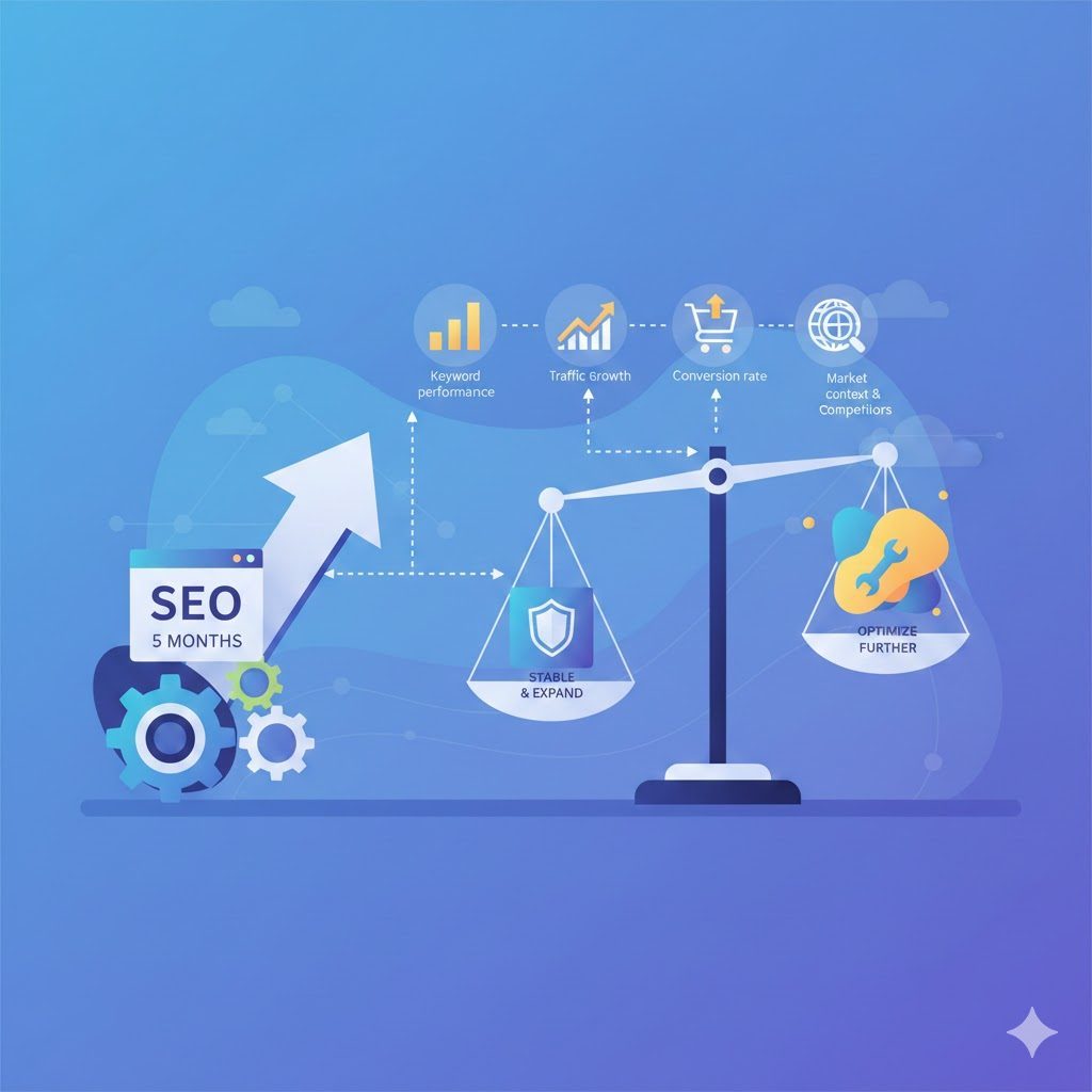 Khi đã trải qua 5 tháng thực hiện chiến dịch SEO, câu hỏi đặt ra liệu bạn đã sẵn sàng để mở rộng chiến dịch hay chưa là điều mà nhiều doanh nghiệp cần xem xét cẩn thận. Để xác định điều này, bạn cần thẩm định lại các yếu tố quan trọng và xem xét dữ liệu toàn thời gian để đánh giá độ thành công hiện tại.