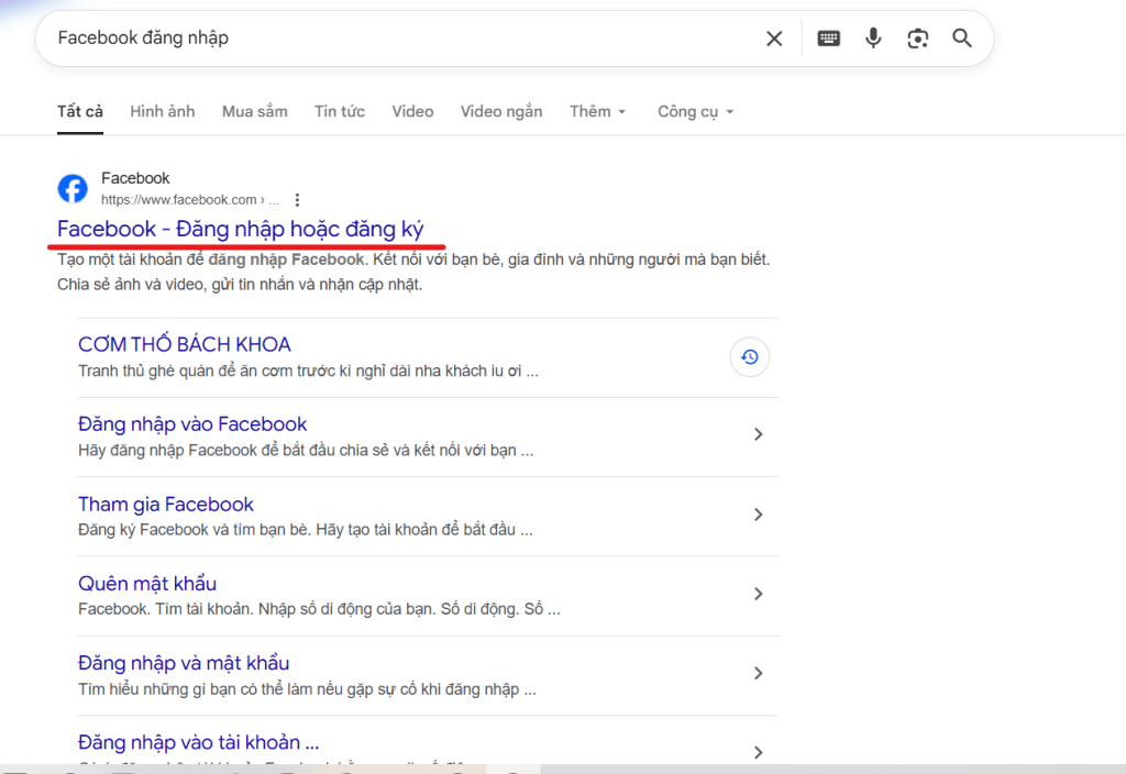 Ví dụ: Từ khóa “Facebook đăng nhập”